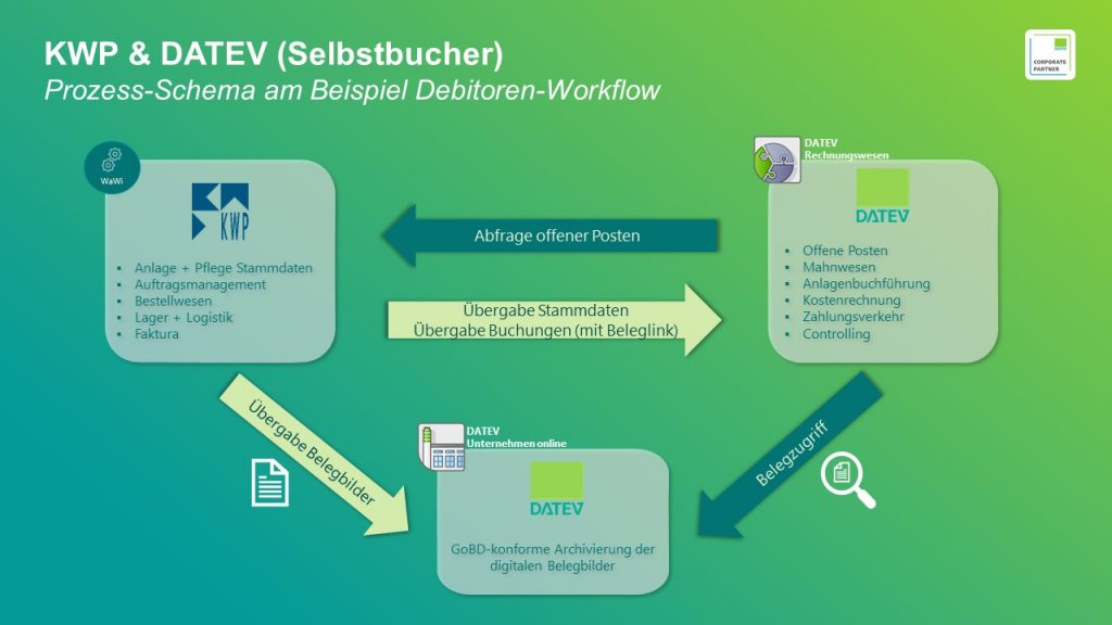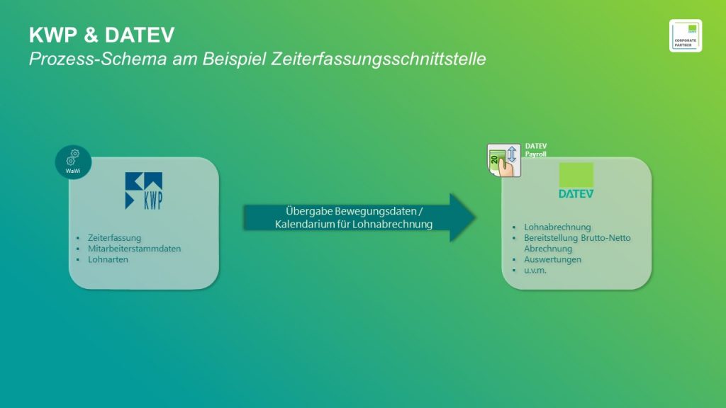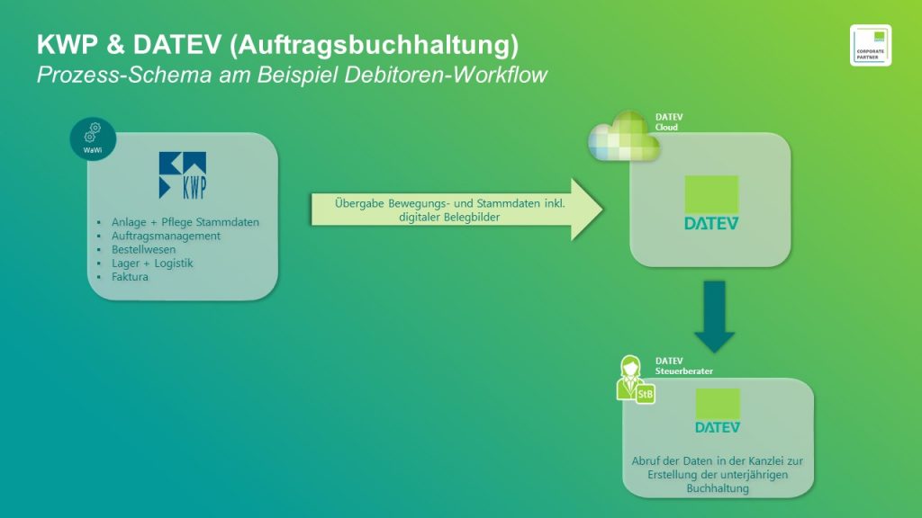Mit der DATEV verbindet die KWP Informationssysteme GmbH eine jahrelange Zusammenarbeit. Bereits 2013 wurde KWP zum Software-Partner der DATEV eG, 2022 wurde KWP als Spezialist für digitale Prozesse im Handwerksbetrieb nun zum offiziellen DATEV Corporate Partner ausgezeichnet.